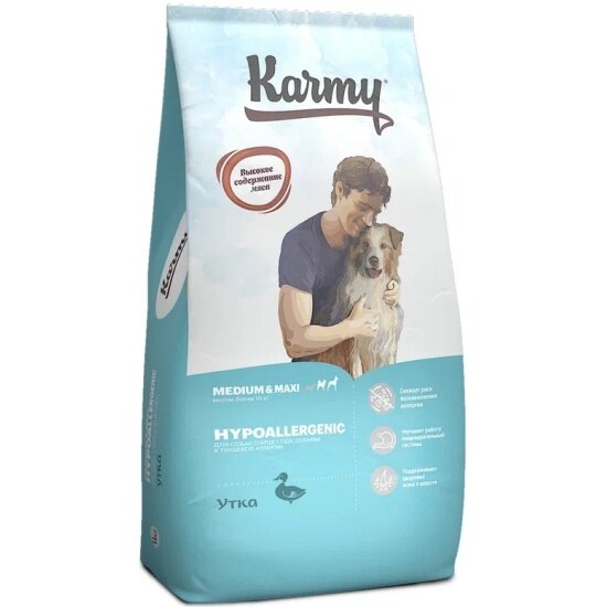 Корм сухой Karmy Hypoallergenic Medium & Maxi для собак средних и крупных пород, Утка 14кг: сравнение цен, характеристики, фото, актуальное наличие и цены.
