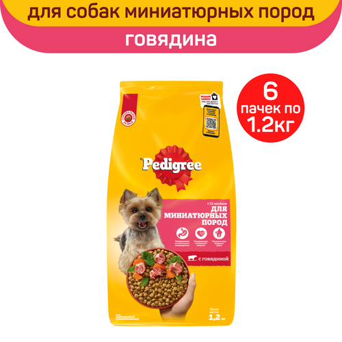 Корм сухой «Pedigree» для взрослых собак миниатюрных пород, с говядиной, 1,2 кг х 6 шт.: сравнение цен, характеристики, фото, актуальное наличие и цены.