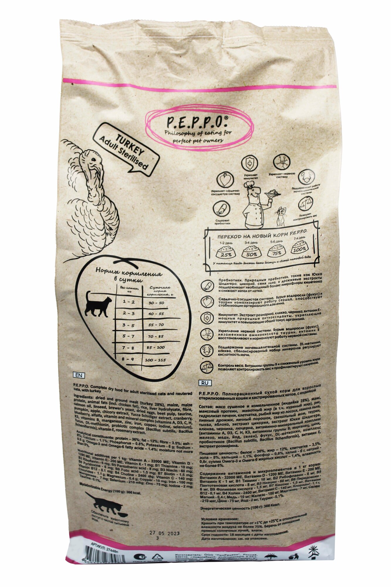 Сухой корм Peppo Adult Sterilised Turkey для стерилизованных и кастрированных кошек
