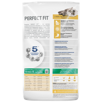 Корм PERFECT FIT содержит все необходимые витамины и минералы, включая витамины А, Е, D3 и таурин, а также такие микроэлементы, как цинк, железо, марганец, медь и йод. Энергетическая ценность составляет 392 ккал на 100 грамм продукта.