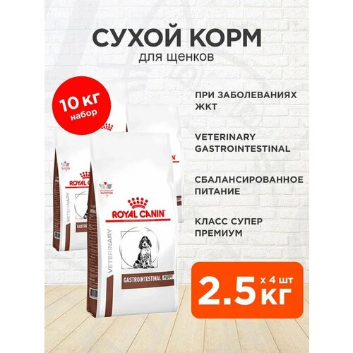 Корм сухой Royal Canin Gastrointestinal Puppy для щенков при заболеваниях желудочно-кишечного тракта, 2,5 кг х 4 шт: сравнение цен, характеристики, фото, актуальное наличие и цены.