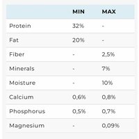 - Контроль системы пищеварения: ингредиенты, обладающие высокой усвояемостью, такие как крахмал из тапиоки, куриное мясо и яичный альбумин, обеспечивают организм достаточным количеством энергии и высококачественным белком.