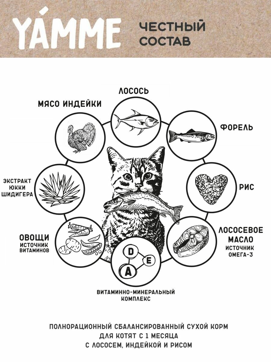 YÁMME - гипоаллергенное натуральное питание для котят с 1 месяца всех пород. Индейка, лосось, цельнозерновой рис.