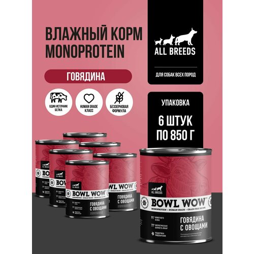 Корм влажный BOWL WOW для взрослых собак мелких пород, диетический, гипоаллергенный, Говядина с овощами, 850 г х 6 шт: сравнение цен, характеристики, фото, актуальное наличие и цены.