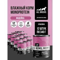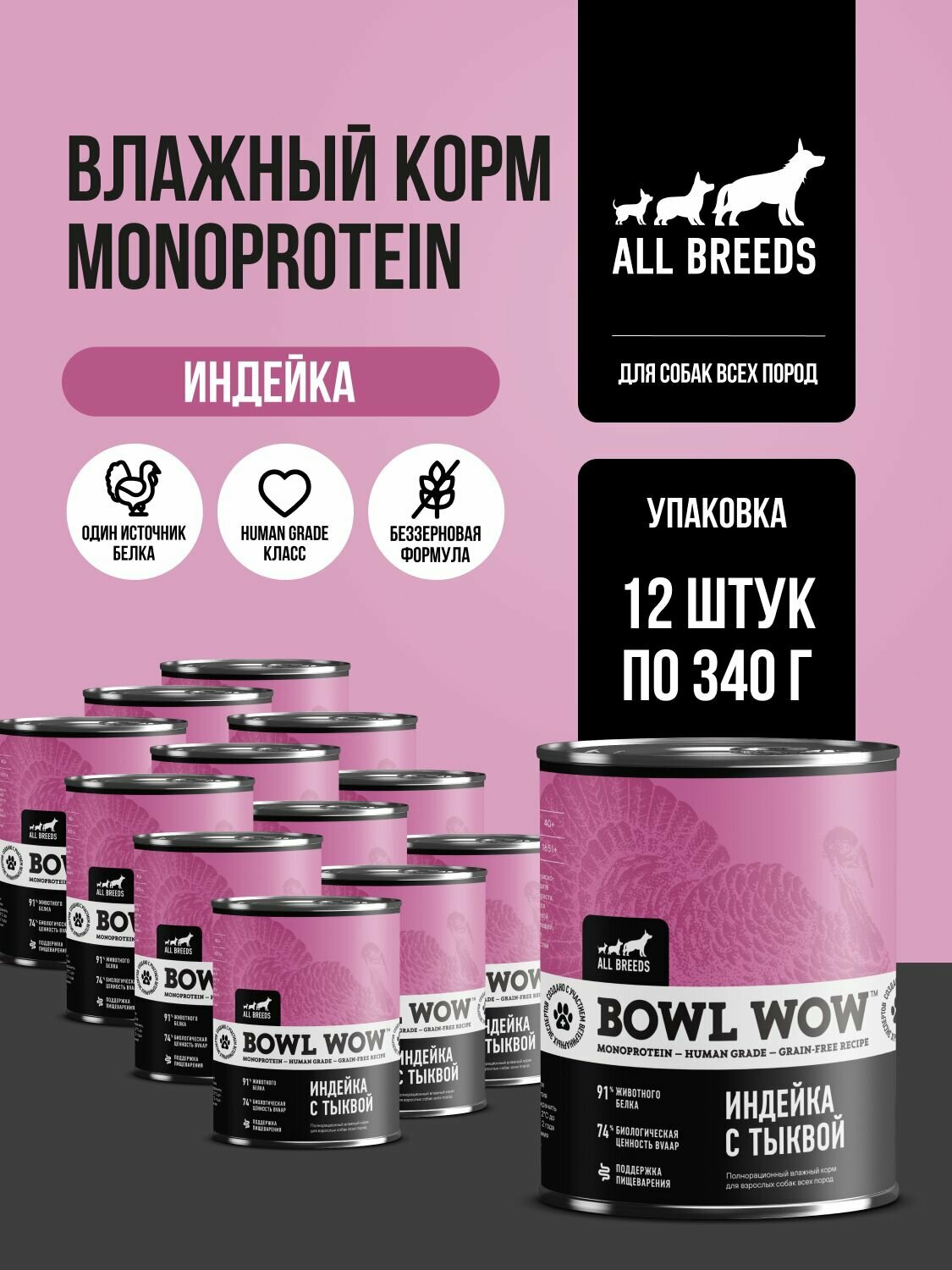 Корм влажный BOWL WOW для взрослых собак всех пород, диетический, гипоаллергенный, Индейка с овощами, 340 г х 12 шт: сравнение цен, характеристики, фото, актуальное наличие и цены.