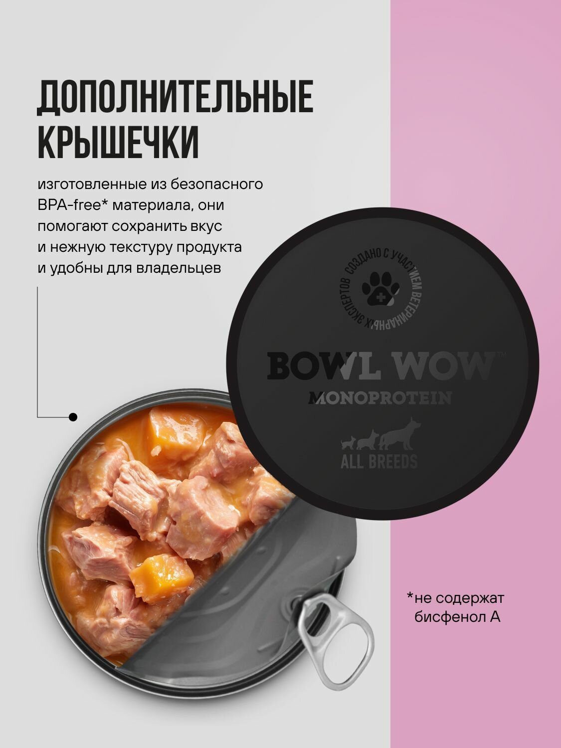 Купить Корм влажный BOWL WOW для взрослых собак всех пород, диетический, гипоаллергенный, Индейка с овощами, 340 г х 12 шт с доставкой по всей России.