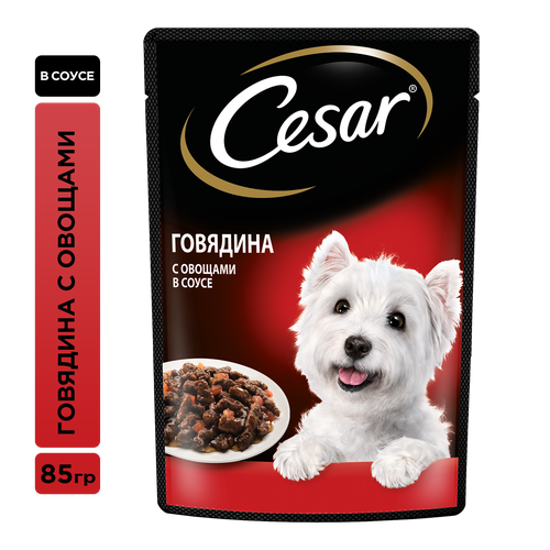 Корм влажный Cesar говядина и овощи в соусе для взрослых собак: вкусное и полезное питание