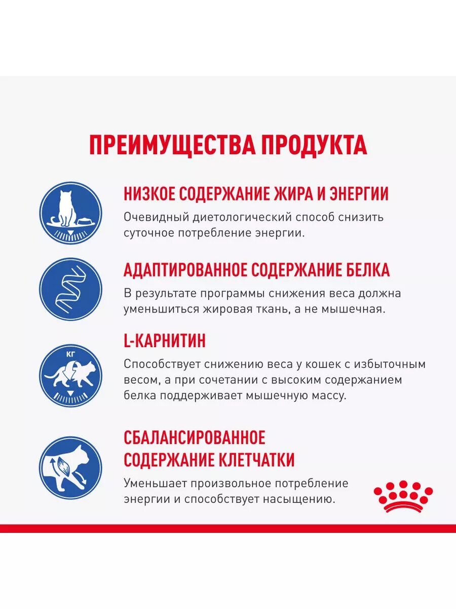 В период снижения веса огромное значение имеет сохранение мышечной массы кошки. Вот почему ROYAL CANIN®Light Weight Care мелкие кусочки в соусе отличается высоким содержанием белка: это помогает кошке поддерживать мышечную массу без повышения потребления калорий – а, следовательно, постоянно оставаться в хорошей физической форме.
