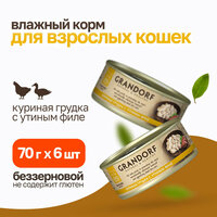 Купить Grandorf chicken With Duck In Broth влажный корм для кошек, куриная грудка с утиным филе — 70 г х 6 шт с доставкой по всей России.