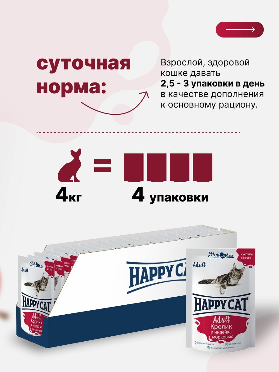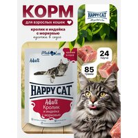 Корм влажный для кошек Хэппи Кэт (Happy Cat) кролик, индейка, морковь в соусе, пауч (24шт*85гр): сравнение цен, характеристики, фото, актуальное наличие и цены.