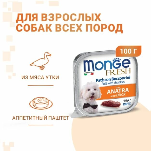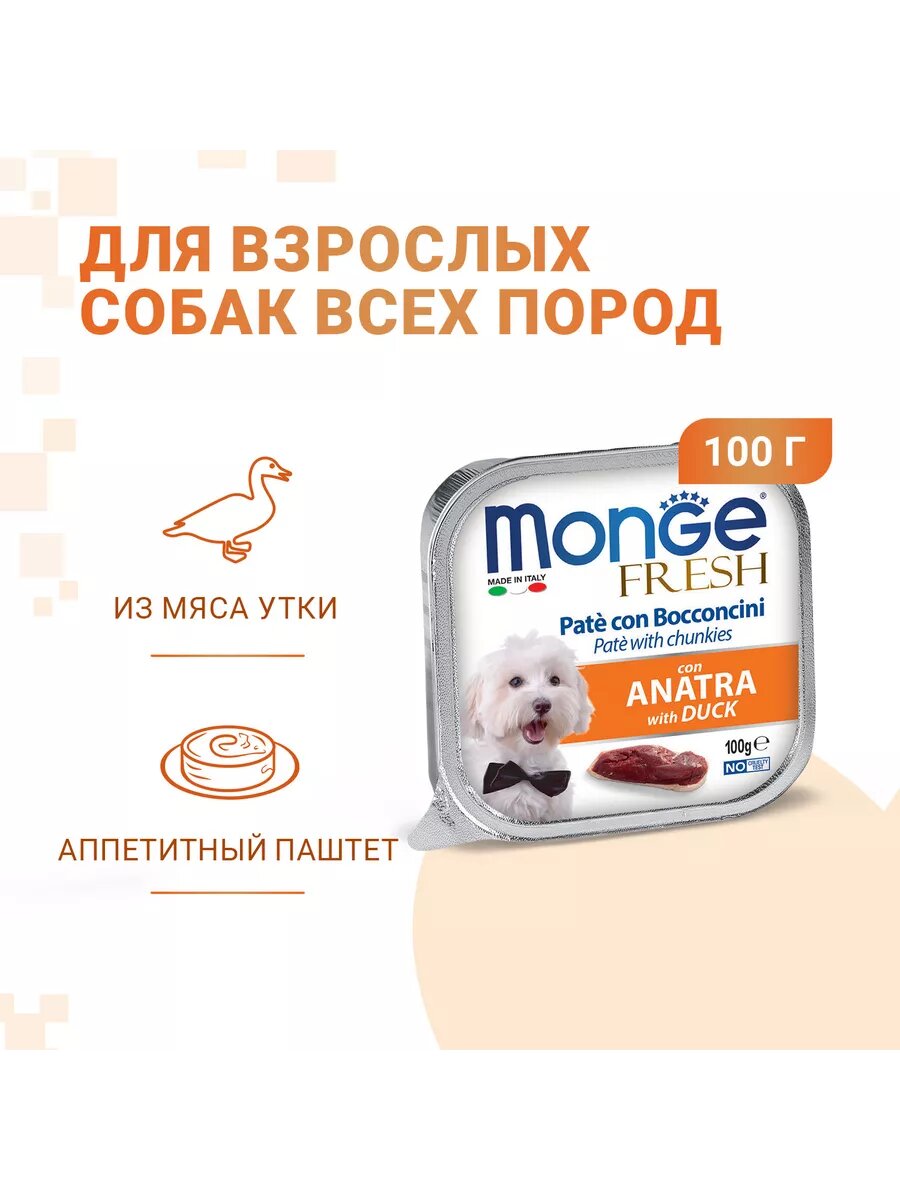 Купить Корм влажный для собак Monge Dog Fresh с уткой, ламистер 12 шт по 100 г с доставкой по всей России. Корм влажный для собак Monge Dog Fresh с уткой, ламистер 12 шт по 100 г: сравнение цен, характеристики, фото, актуальное наличие и цены.