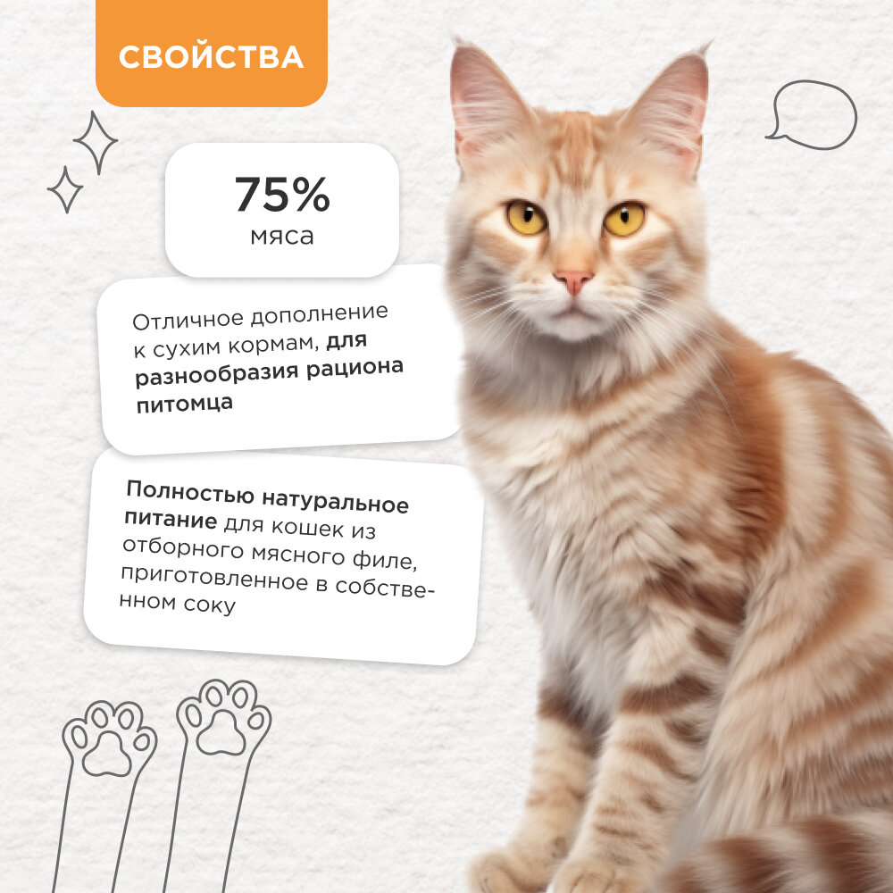 кусочки в бульоне, кусочки в желе, кусочки в соусе, мини-филе