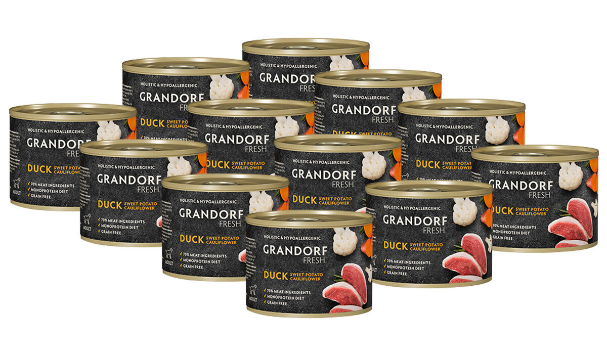 Купить Корм влажный Grandorf Fresh для собак с уткой, бататом и цветной капустой, 200 г х 12 шт с доставкой по всей России. Корм влажный Grandorf Fresh для собак с уткой, бататом и цветной капустой, 200 г х 12 шт: сравнение цен, характеристики, фото, актуальное наличие и цены.