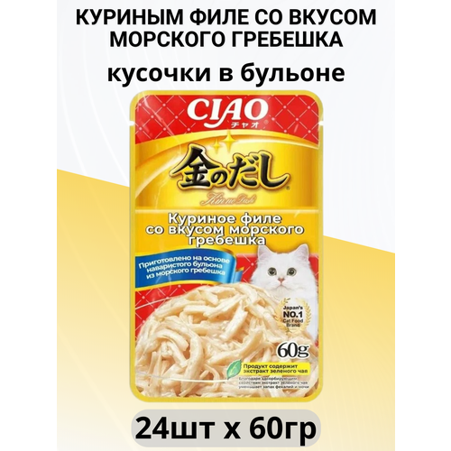 Паучи Inaba для любых кошек с куриным филе со вкусом морского гребешка (24шт х 60гр) Паучи «Со смаком»