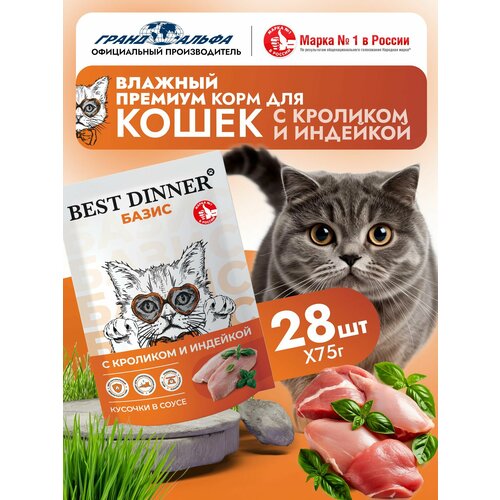 Влажный корм для кошек Best Dinner Basic с Кроликом и Индейкой — это идеальный выбор для заботливых владельцев, стремящихся обеспечить своим питомцам полноценное и сбалансированное питание. Этот корм премиум класса разработан специально для взрослых кошек и подходит для ежедневного кормления.