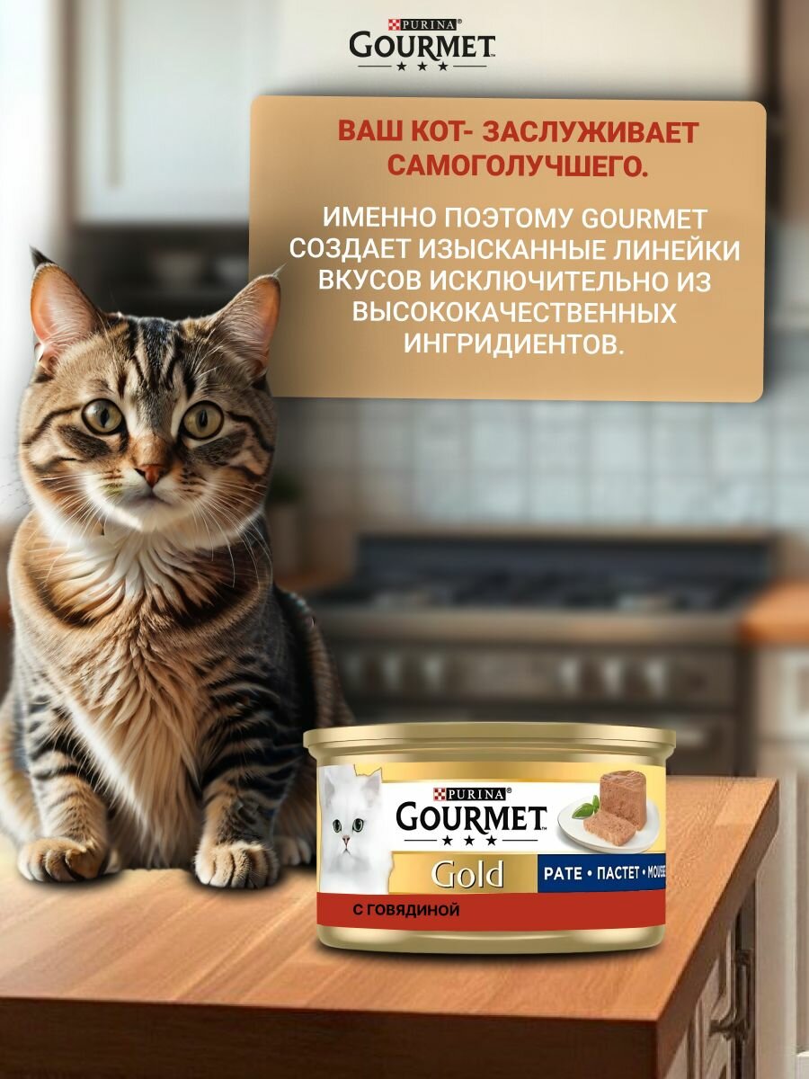 Корм влажный Purina Гурмэ Gourmet Gold паштет с говядиной для кошек 85 г х 6 шт: сравнение цен, характеристики, фото, актуальное наличие и цены.