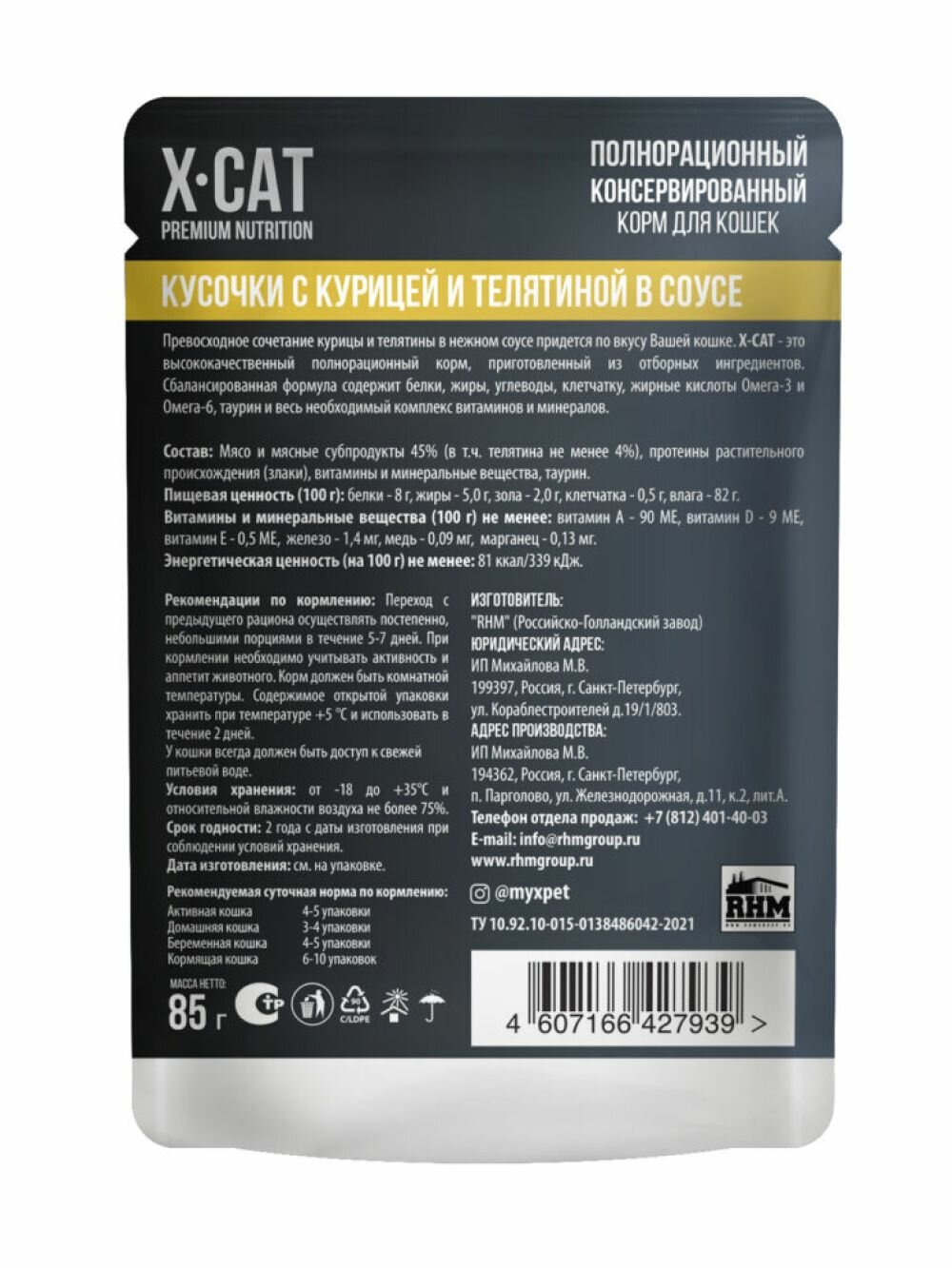 Купить Корм влажный X-CAT для кошек курица и телятина в соусе 85 г х 12 шт с доставкой по всей России. Корм влажный X-CAT для кошек курица и телятина в соусе 85 г х 12 шт: сравнение цен, характеристики, фото, актуальное наличие и цены.