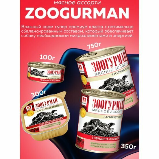 Корм влажный Зоогурман для взрослых собак Мясное ассорти Говядина с отборная 24шт*100гр: сравнение цен, характеристики, фото, актуальное наличие и цены.