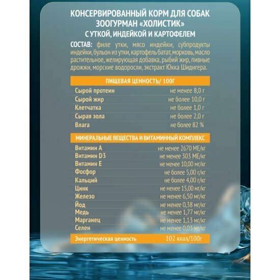 Корм влажный Зоогурман Holistic, С уткой, индейкой и картофелем, для собак 12шт*350г: сравнение цен, характеристики, фото, актуальное наличие и цены.