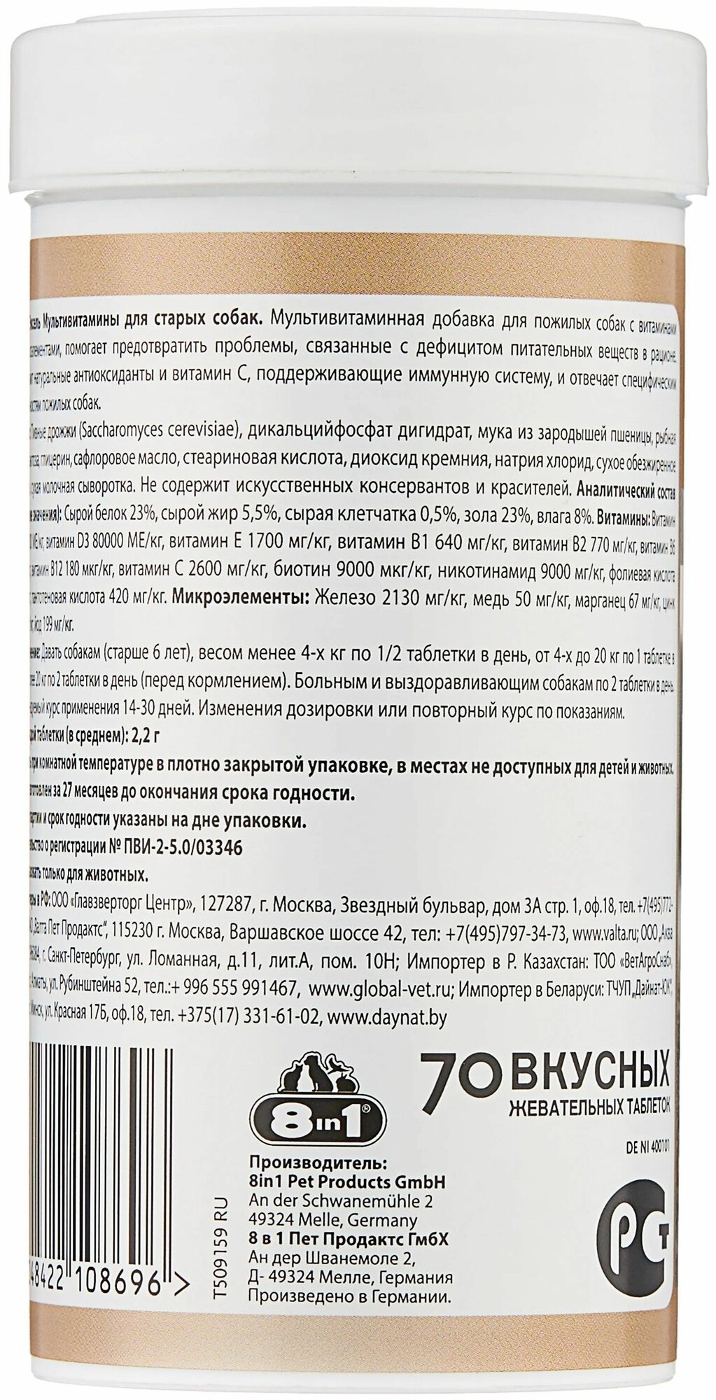 в смеси с кормом или принудительно на корень языка, ежедневно в суточной дозе: до 6 кг - 0.5 шт, 6-12 кг - 1 шт, 12-24 кг - 2 шт, 24-З6 кг - 3 шт, более 36 кг - 4 шт; курс применения - 1 месяц