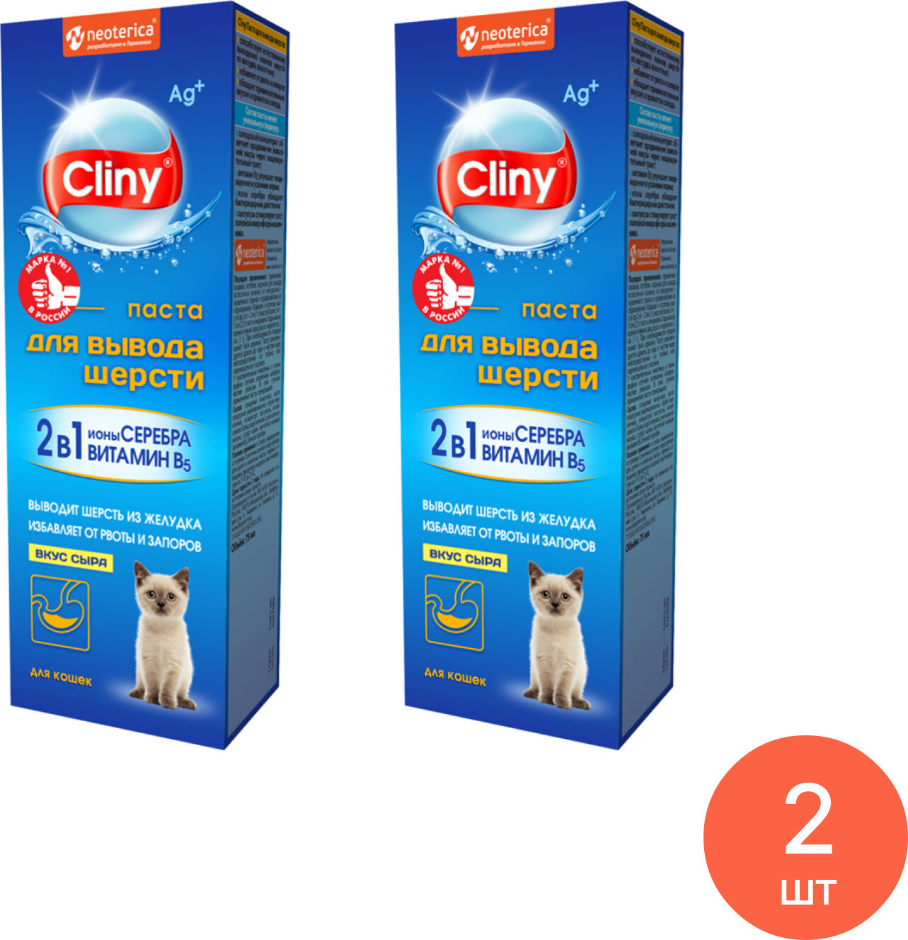 Паста для вывода шерсти Cliny способствует естественному выведению комков шерсти (безоаров) из желудка животных. Избавляет кошек от рвоты, потери аппетита, закупорки кишечника, запоров. Обладает привлекательным для кошек вкусом сыра.