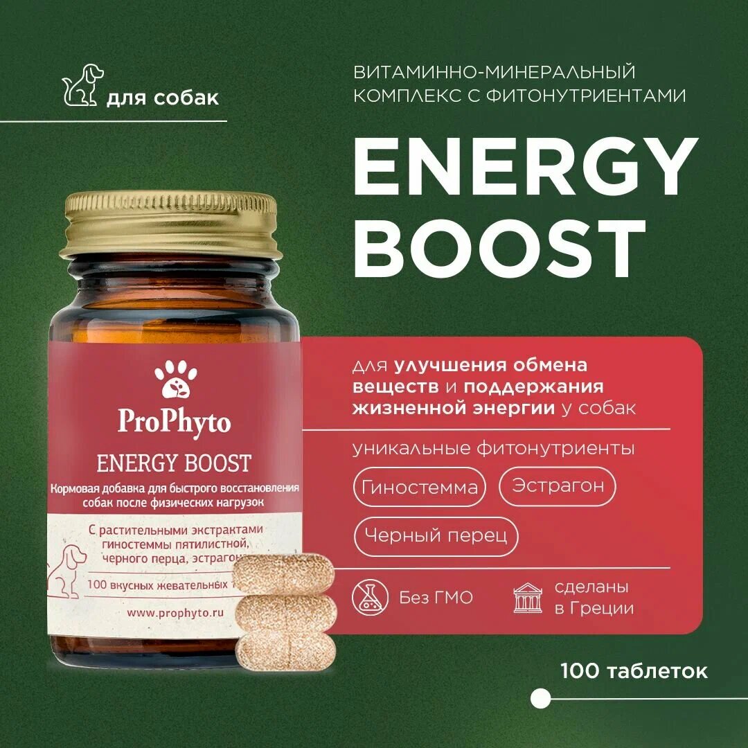 Купить Кормовая добавка для быстрого восстановления после физических нагрузок ProPhyto Energy Boost для собак, 100 таблеток с доставкой по всей России.