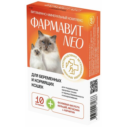 Фармавит Neo — комплекс витаминов, аминокислот и минералов, подобранных с учётом физиологических особенностей беременных и кормящих кошек. Рекомендуется с целью снижения риска патологий беременности и внутриутробных аномалий, повышения секреции молока, биологической ценности молозива, повышения жизнеспособности потомства, обеспечения нормального роста и развития котят, повышения активности иммунной системы.