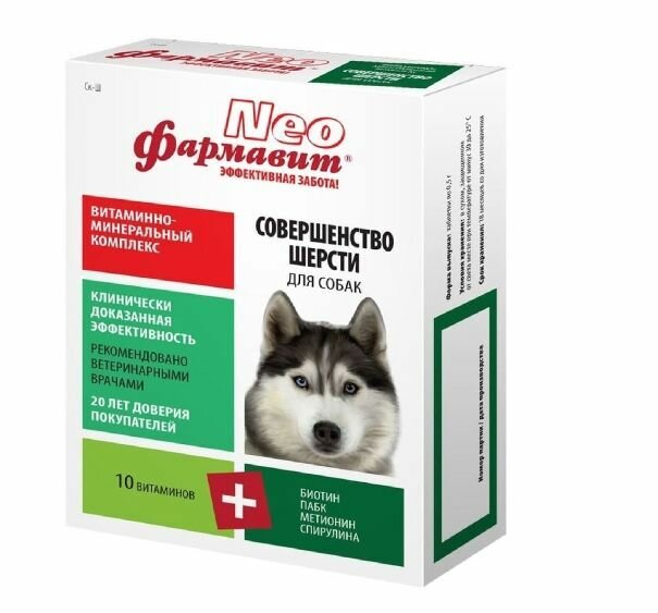 Фармавит Neo Витамины для собак кормовая добавка Совершенство шерсти 1910, 90 таб, 9 уп: сравнение цен, характеристики, фото, актуальное наличие и цены.