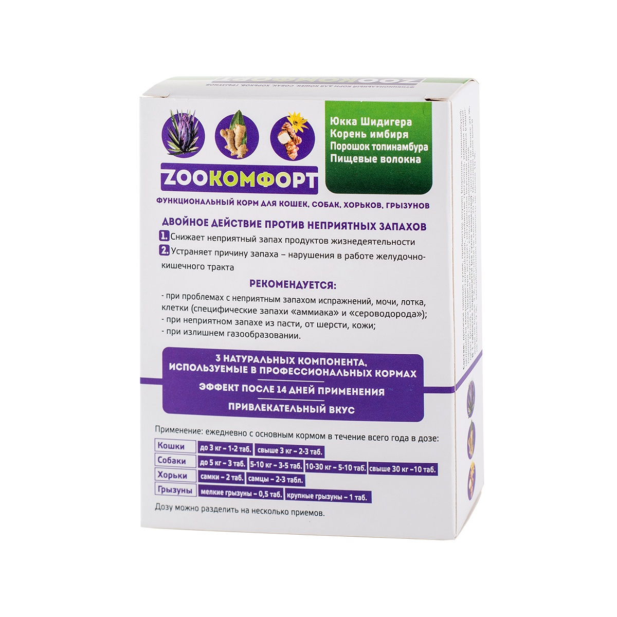 Функциональный корм Zоокомфорт для контроля запахов у кошек, собак, хорьков и грызунов (90таб х 5шт): сравнение цен, характеристики, фото, актуальное наличие и цены.