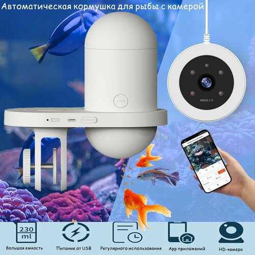 Интеллектуальная технология: камера с разрешением 2K HD, прямая трансляция видео в формате 1080 HD (инфракрасное ночное видение) и объектив "рыбий глаз" с углом обзора 170° позволяют четко и непосредственно наблюдать за каждым движением рыбы; Благодаря запланированному кормлению и оповещениям о нехватке корма вы можете следить за аппетитом и поведением вашей рыбы в любое время.