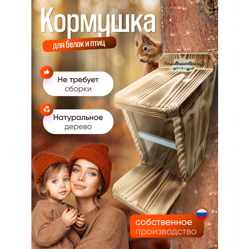 Представляем вашему вниманию кормушку для птиц и белок, которая станет отличным дополнением к вашему саду или участку. Изготовленная из экологически чистого дерева, эта кормушка обеспечивает безопасность и комфорт для птиц и белок, а также послужит прекрасным элементом декора.