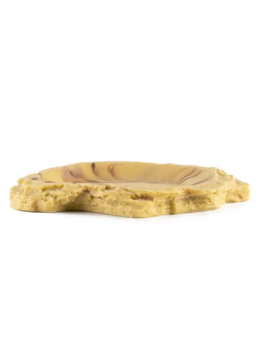 Кормушка для рептилий является неотъемлемой частью любого террариума. При выборе размера кормушки необходимо помнить о том, чтобы животное не смогло ее перевернуть, передвигаясь по террариуму. Однако с черепахами все наоборот. Зачастую из-за высоких бортиков черепахи переворачиваются на панцирь, но данная кормушка отлично им подходит из-за небольшой высоты. Она не только выглядит, но и ощущается как каменная при касании. Несмотря на то, что внешне кормушка будто сделана из необработанного камня, внутри она гладкая, что позволяет комфортно ее мыть. Размер: 14 x 12 x 1.5 смМатериал: полиэфирная смола. Бренд: Lucky Reptile (Германия).