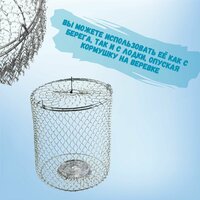 С помощью данной кормушки вы можете легко и быстро подготовить прикормку. Внутрь можно набить кашу, жмых и другие прикормки, что обеспечит привлечение рыбы к вашему месту ловли. Размер ячейки в 8-10 мм позволяет эффективно удерживать прикормку, не позволяя ей высыпаться до момента, когда рыба подойдёт к месту ловли.