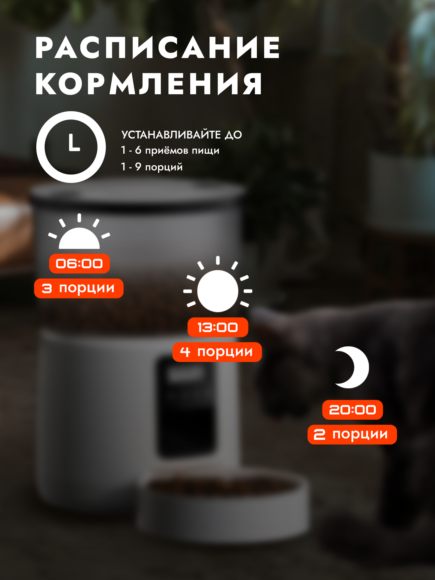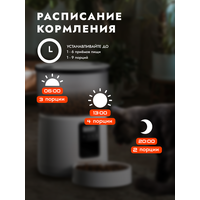 Автоматическая кормушка для животных, автокормушка для кошек и собак, 3 литра. Автоматическая кормушка сделана из высококачественного АБС-пластика. Два источника питания: от внешнего источника и от батареи. Кормушка автоматическая на 4 кормления в день подходит для кошек и собак, а так же для других домашних животных. Блок управления сделан в виде робота, нажатием на кнопки вы можете настроить время подачи и количество кормлений, размер порций для кота или собаки, а также записать свой голос. Слыша Ваш голос питомцу будет легче приспособиться к кормушке. Где бы Вы не находились Ваш питомец будет всегда сыт. Автоматическая кормушка для кошек и собак состоит из отсека для корма объемом 3 литра и миски. Отсек с кормом легко отделить от корпуса кормушки и помыть водой. Контроль размера порций и частоты кормления, гарантирует защиту от развития ожирения и связанных с ним заболеваний. Кормушка подходит для средних и для мелких домашних животных. Кормушка гармонично вписывается в разные стили интерьера.