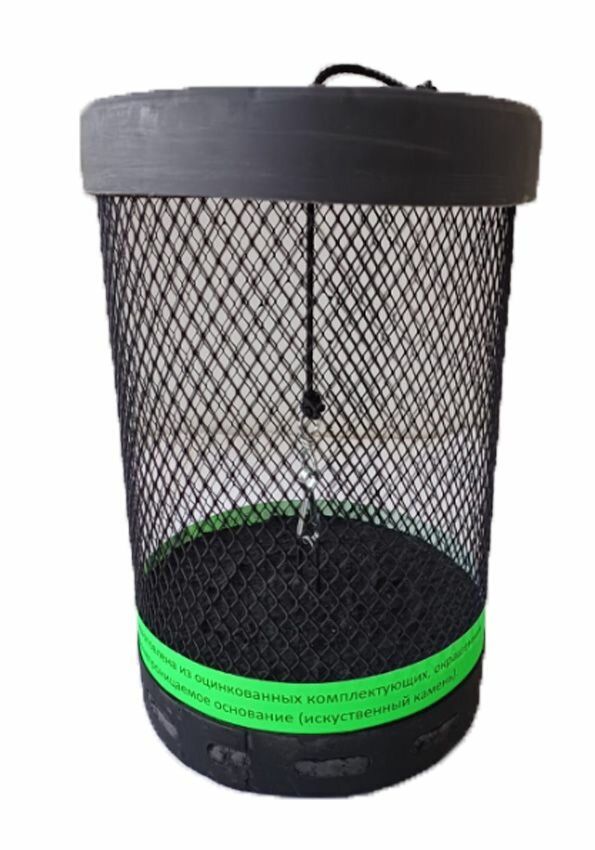 Кормушка рыболовная донная для ловли леща с лодки на течении. Изготовлена из жесткой оцинкованной сетки, ячейка в свету 6Х9 мм, окрашенная, с высокопрочным водонепроницаемым минералокерамическим основанием (искусственный камень) без свинца, ручная работа. Идеальна для перловки и пшена. Экологически чистая, не наносит вред окружающей среде. Объем 5,5 л. Верх кормушки изготовлен так, что не имеет острых углов и граней и не причинит пользователю травм: царапин, порезов и т. д. Дно кормушки не имеет выступающих частей, поэтому не будет цепляться за камни, коряги и пр. на дне реки.