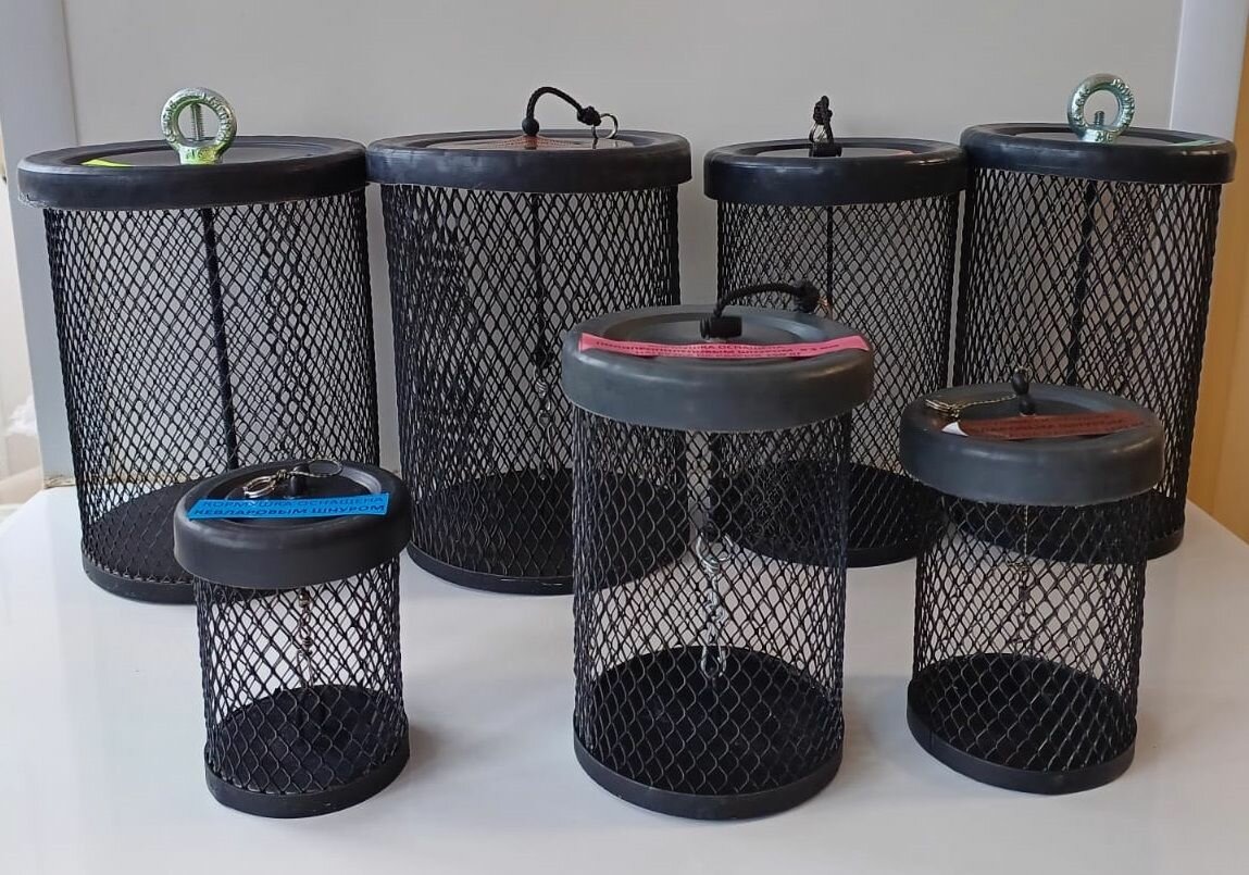 Кормушка рыболовная донная для ловли леща с лодки на течении. Изготовлена из жесткой оцинкованной сетки, ячейка в свету 6Х9 мм, окрашенная, со свинцовым основанием, ручная работа. Идеальна для перловки и пшена. Объем 4,6 л. Верх кормушки изготовлен так, что не имеет острых углов и граней и не причинит пользователю травм: царапин, порезов и т. д. Дно кормушки не имеет выступающих частей, поэтому не будет цепляться за камни, коряги и пр. на дне реки.