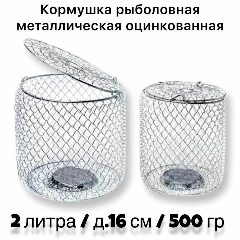Кормушка металлическая оцинкованная, огруженная. Внутрь кормушки для рыбалки можно набить кашу, жмых и другие прикормки. Зимняя кормушка для рыбалки это отличный выбор. Можно забросить рядом непосредственно с местом ловли, либо опустить с борта лодки на веревке. Применяется как в водоемах, где нет течения, так и на реках, где течение довольно сильное. Эта кормушка для рыбалки изготовлена из прочного металла в виде цилиндра, дно которой укреплено и утяжелено. Корпус кормушки обтянут прочной металлической сеткой. Такая кормушка будет служить ни один сезон. Объем кормушки достаточен для продолжительной рыбалки без добавления прикормки.