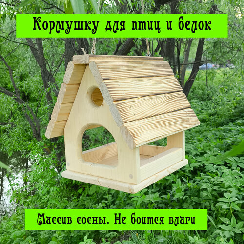 Вашему вниманию представляем новинку от нашего производителя : кормушку для птиц и белок из массива сосны. Можно долго писать об особенностях и красоте данного изделия , мы вкратце напишим о самых важных. 1. материал: массив сосны 2. ручная работа 3.при сборке кормушки кроме высококачественного клея добавочно вся конструкция укреплена саморезами для долговечности. Саморезы скрыты под шканты для красоты. 4.Изящный размер : 260/220/250 мм 5.Кормушка выполнена из натурального дерева хвойных пород. Кормушка подвесная, её вешают на ветку дерева на верёвку. Детали кормушки хорошо отшлифованы, без заноз и зазубрин. Такая кормушка станет отличным сувениром, полезным подарком на новый год, именины, и любой другой праздник ребёнку и взрослому. Данный домик для птиц имеет открытые все четыре стороны, что позволяет сразу нескольким птицам кушать одновременно.