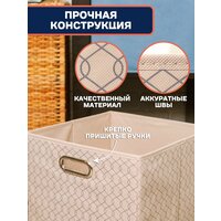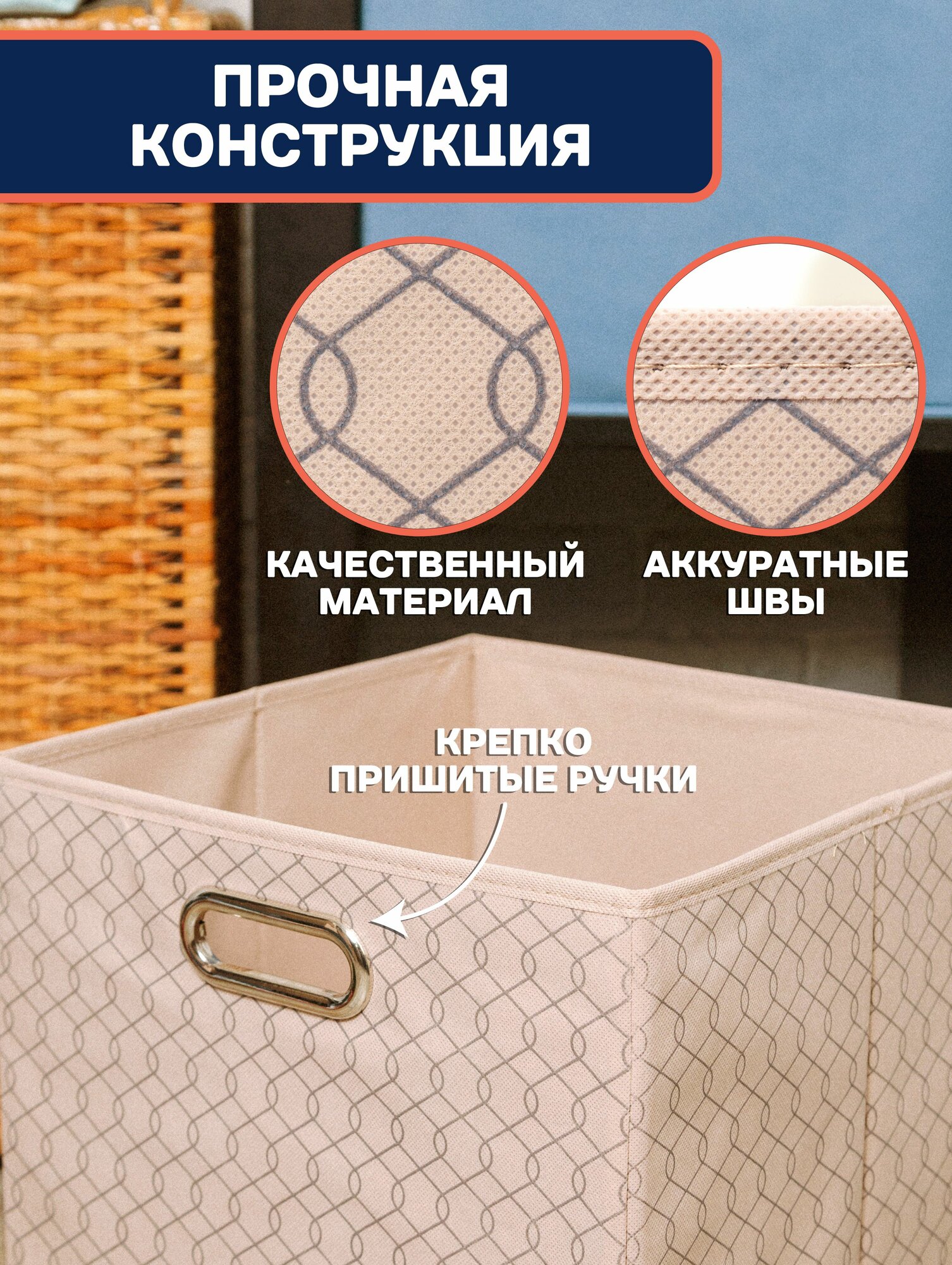 Коробки для хранения вещей выполнены из качественного нетканого полотна и плотного картона, которая обеспечивает долговечность и надежность изделия. Их стильный и лаконичный дизайн подойдет к любому интерьеру, будь то спальня, гостиная или гардеробная. Благодаря прочным ручкам, вы без труда сможете перемещать коробки и устанавливать их на полках, в шкафах или под кроватью.