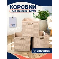 Набор из трех коробок для хранения вещей из нетканого материала и картона 31х31х31 см — идеальное решение для организации и оптимизации пространства в вашем доме. Эти универсальные коробки позволят вам аккуратно хранить различные предметы и поддерживать порядок в любой комнате. Набор включает три коробки одинакового размера, что обеспечивает компактное и удобное хранение.