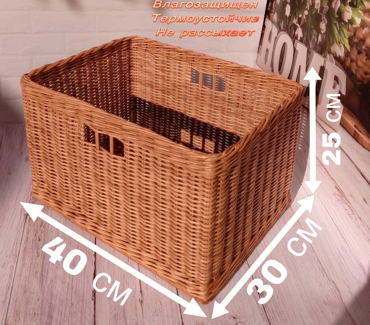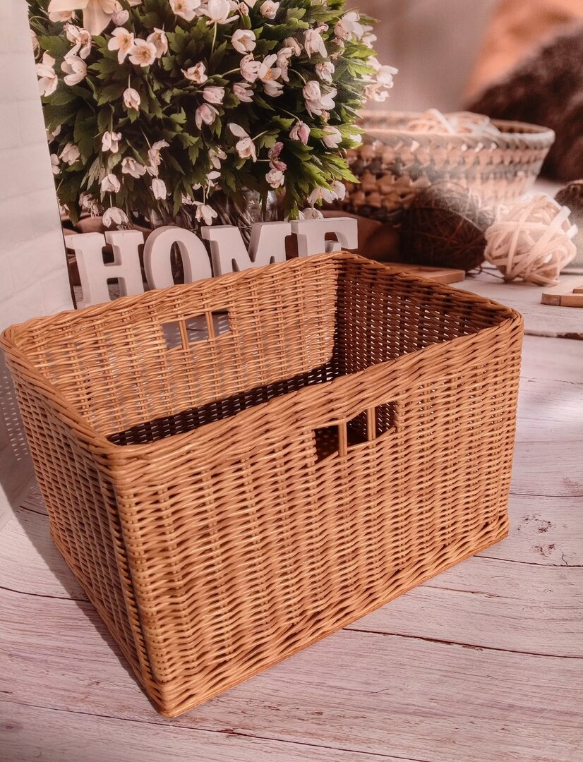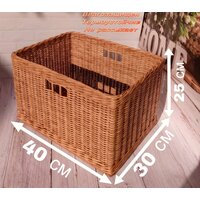 Изделие изготовлено из натуральных материалов, безопасно для здоровья семьи и экологии. Размеры корзинки 40×30 см и высотой 25 см (возможна разница +-см, так как это ручная работа). Дно короба выполнено из фанеры (толщина 6мм). Плетенный из бумажной лозы, покрыт защитными средствами от внешних воздействий. Не боится влаги и высыхания. Специального ухода не требует, в случае загрязнения ополоснуть под проточной водой или протереть влажной тканью и оставить до полного высыхания, не допуская деформации.