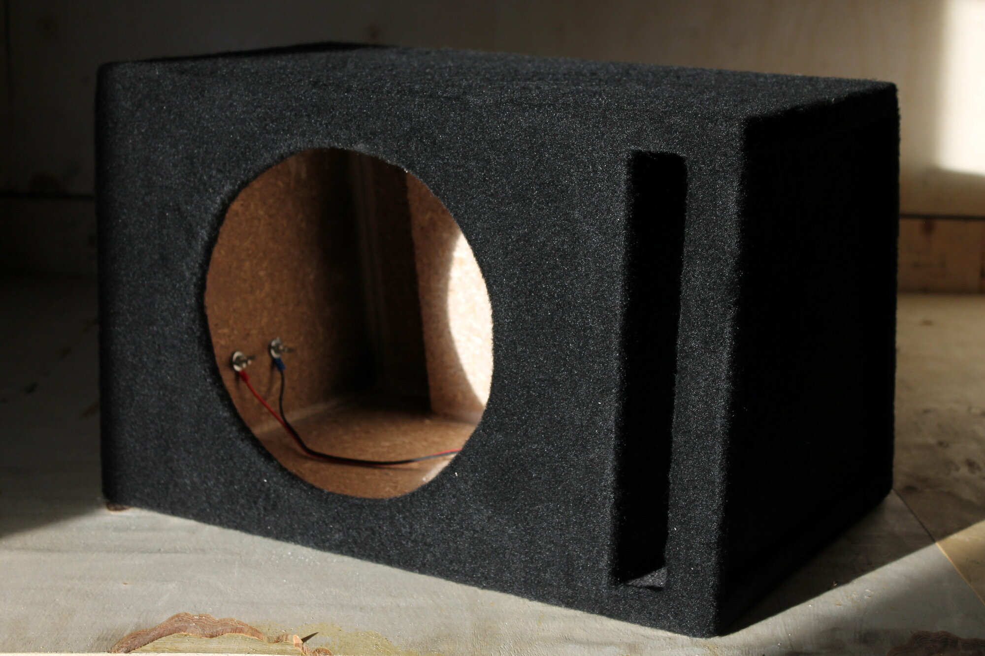 В целом, короб для сабвуфера 10" 31л - это отличный выбор для тех, кто хочет улучшить качество звука своего сабвуфера и наслаждаться более глубоким и насыщенным басом. Короб акустический для сабвуфера под динамик 10 дюймов. Форма - трапеция. Фазоинвертор передний, щелевой 35мм. Материал ДСП. Обивочный материал – карпет. Цвет - чёрный. Настроен на частоту 36 Гц. Боковые стенки утоплены на 10 мм. Внутренний объём – 31 литр. Для удобства подключения установлен терминал "барашки". Провод для подключения динамика медный 2х0,75мм. Ширина - 47см, высота - 31см, глубина - 34(29)см.