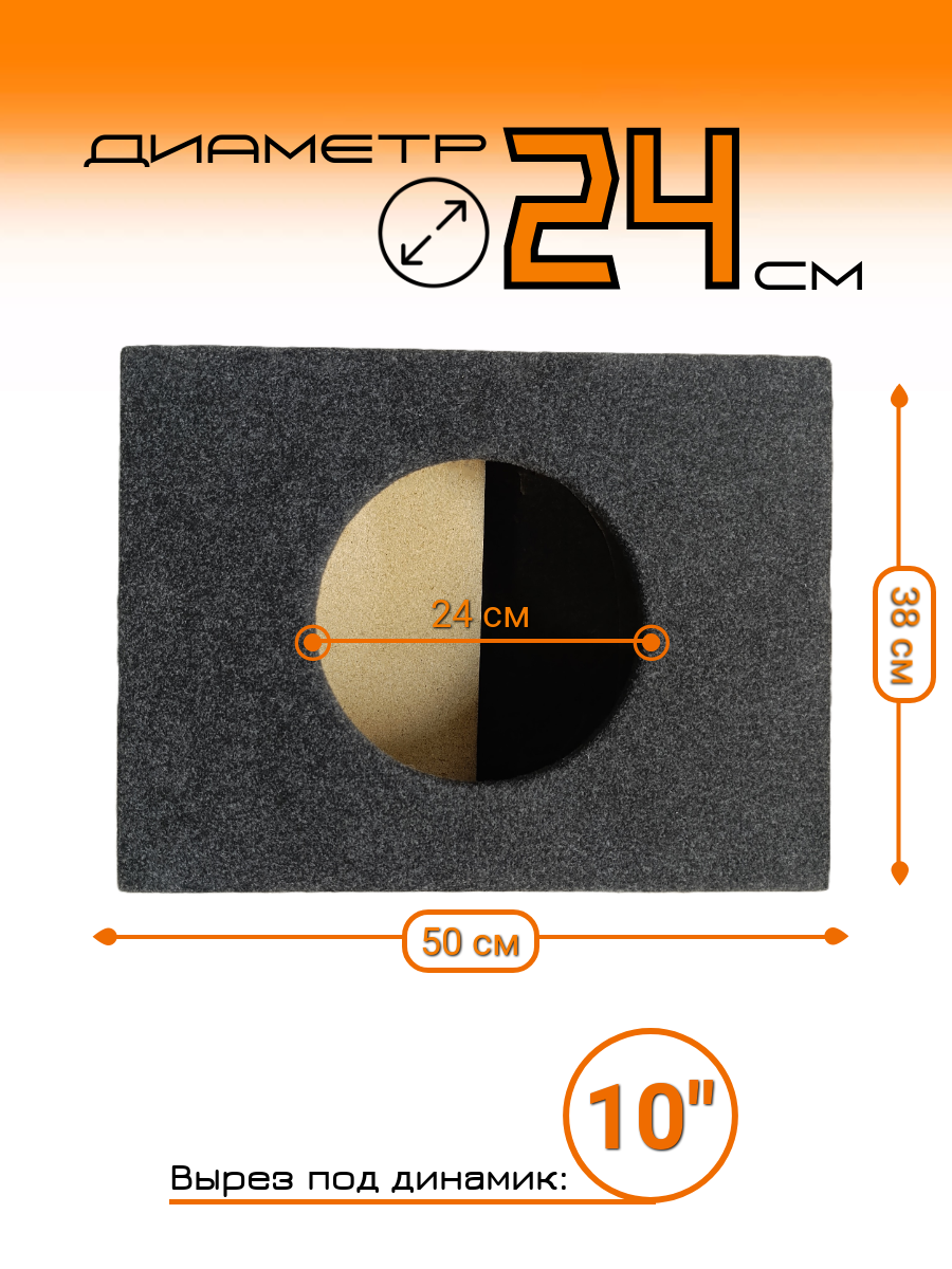 ВАЖНО! ВСЕ ХАРАКТЕРИСТИКИ УКАЗАНЫ НА ФОТО, ВНИМАТЕЛЬНО ИЗУЧИТЕ ПЕРЕД ПОКУПКОЙ. Корпус для сабвуфера 10" изготовленный из ДВП толщиной 15мм, с боковой щелью и объемом 45 литров - это оптимальное решение для любителей качественного звука в автомобиле. Этот корпус, специально разработанный для сабвуферов диаметром 10 дюймов, обеспечивает глубокий и мощный бас, благодаря оптимальному объему 45 литров и конструкции с боковой щелью. Короб для сабвуфера позволит вам насладиться чистым и детализированным звучанием, а также подчеркнет динамику и глубину низких частот. В корпусе имеются клеммы для подключения акустического провода. Его дизайн с боковой щелью не только улучшает акустические характеристики, но и придает корпусу стильный внешний вид.