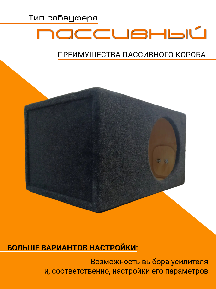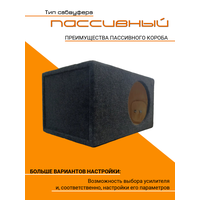 Важно! Все характеристики указаны на фото, внимательно изучите перед покупкой. Корпус для сабвуфера 10" изготовленный из качественной многослойной фанеры толщиной 15мм, фазоинверторный 55 литров - это оптимальное решение для любителей качественного звука в автомобиле. Этот корпус, специально разработанный для сабвуферов диаметром 10 дюймов, обеспечивает глубокий и мощный бас, благодаря оптимальному объему 55 литров и фазоинверторной конструкции. Короб для сабвуфера позволит вам насладиться чистым и детализированным звучанием, а также подчеркнет динамику и глубину низких частот. Корпус изготовлен из качественной многослойной фанеры. В корпусе имеются клеммы для подключения акустического провода. Универсальный фазоинверторный тип короба с трубой диаметром 100 мм подходит для различных моделей subwoofer. Корпус изготовлен из Фанеры 15 мм, обивочный материал - автомобильный карпет. Длина: 50 см Ширина: 38 см Высота: 30 см Посадочная глубина: 20 см Подходит для множества моделей сабвуферов, таких как Dynamic State SMW-31.22, AMP MASS 1000 12D2, Deaf Bonce SA272D2, FSD MASTER 12 D2, Deaf Bonce MF-12S D2 и т. д.