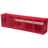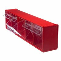 Короб откидной Стелла-техник F-600-5 (600х140х168мм.) 5 ячеек, красный, прозрачный служит для хранения мелкоштучных предметов. Данная система хранения не подвержена случайному опрокидыванию. Откидные стандартные ячейки обеспечивают быстрый доступ к необходимым предметам. В случае необходимости полного высыпания или наполнения внутренние ячейки легко извлекаются. Полезный внутренний размер каждой ячейки 108х98х107мм. Специальный пластик, из которого выполнен короб, выдерживает значительные нагрузки и обладает оптимальной эластичностью. На основе данных коробов можно сформировать многоярусную систему хранения вертикально, в том числе и с коробами других размеров, таких как F-600-9, F-600-6 и F-600-4 по принципу пирамиды. Использование в качестве дополнительного элемента специальных металлических рам, позволяет комплекту коробов нести большие нагрузки в напольном, настольном и настенном варианте. Короб данной модели легко можно прикрепить к стене или установить на специальные кронштейны (Артикул: Кронштейны-FOX-750). Обзорность содержимого сквозь прозрачные внутренние ячейки, наличие отсека для информационных бирок, легкое извлечение внутреннего короба для опустошения и наполнения, все это является неоспоримым преимуществом откидных коробов серии F. Температура эксплуатации от -10 до +70С.