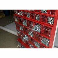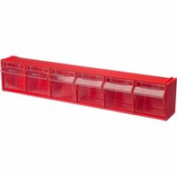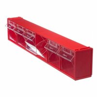 Короб выполнен в ярком красном цвете, что позволяет легко найти его в складской системе. Прозрачные стенки позволяют видеть содержимое короба, что облегчает поиск необходимых предметов.