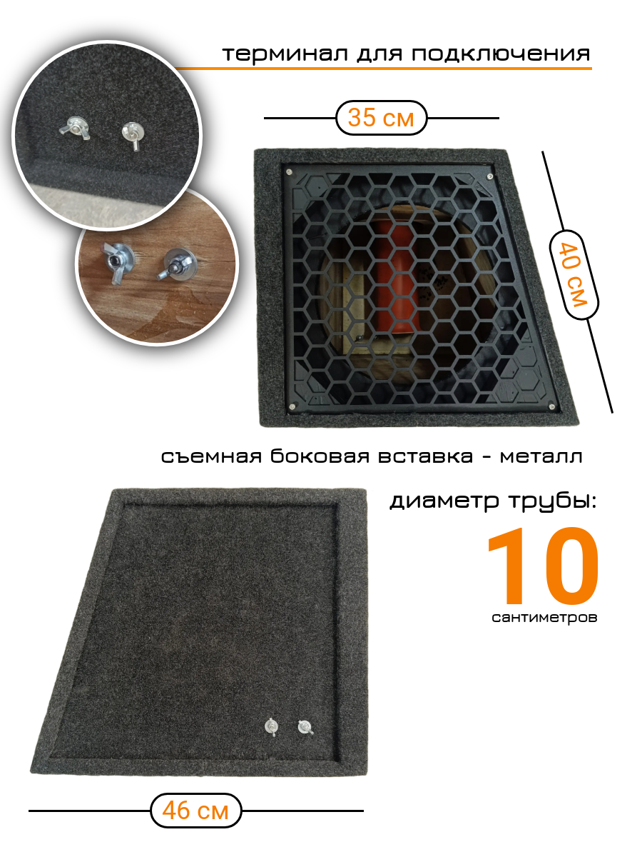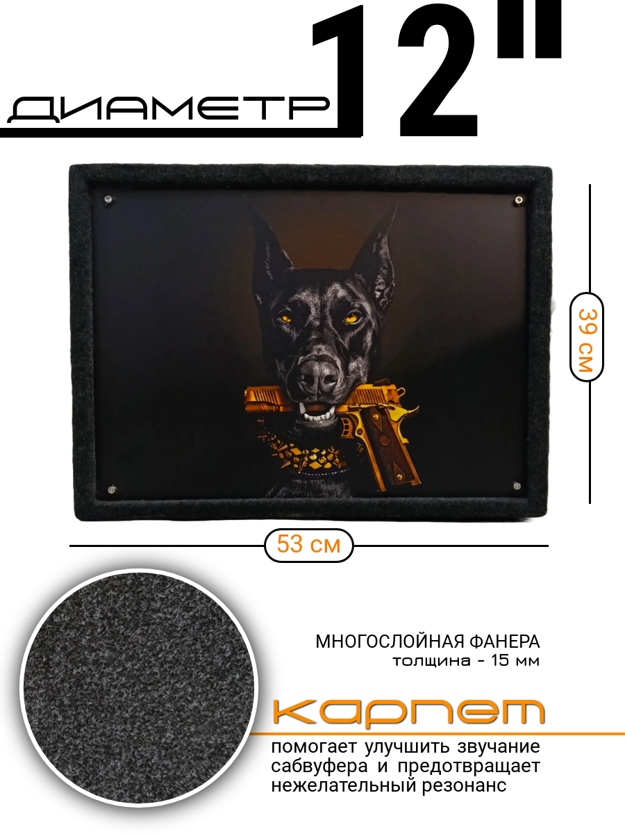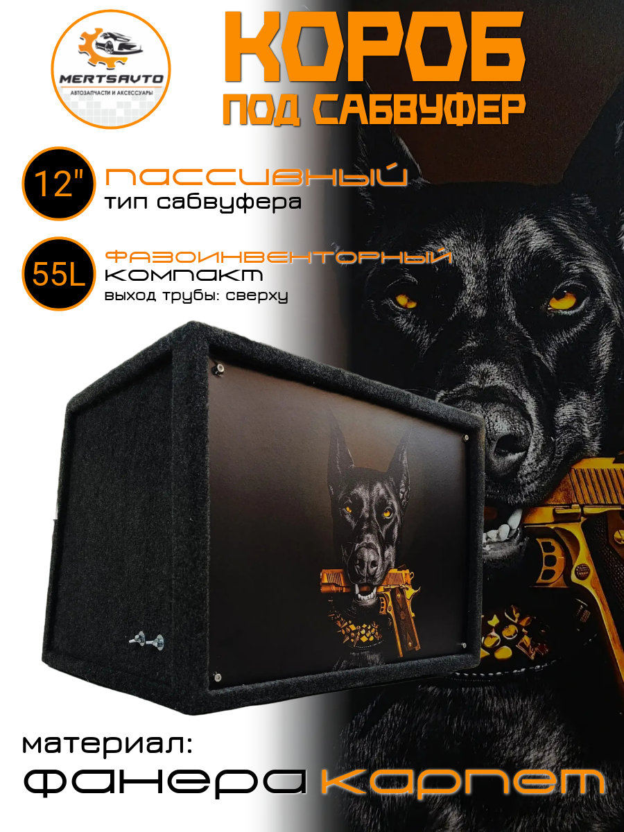 Корпус для сабвуфера 12" изготовленный из многослойной фанеры толщиной 15мм, с фазоинвенторной конструкцией, 55 литров - это оптимальное решение для любителей качественного звука в автомобиле. Этот корпус, специально разработанный для сабвуферов диаметром 12 дюймов, обеспечивает глубокий и мощный бас. Благодаря оптимальному объему 55 литров и фазоинвенторной конструкции. Короб для сабвуфера позволит вам насладиться чистым и детализированным звучанием, а также подчеркнет динамику и глубину низких частот. В корпусе имеются клеммы для подключения акустического провода. Внутренняя конструкция с трубой диаметром 10 см и длиной 30 см, посадка до трубы 28 см, подходит для различных моделей subwoofer.
