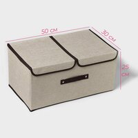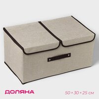 Купить Короб стеллажный для хранения с двойной крышкой Доляна Тэри , 50 30 25 см, бежевый с доставкой по всей России.