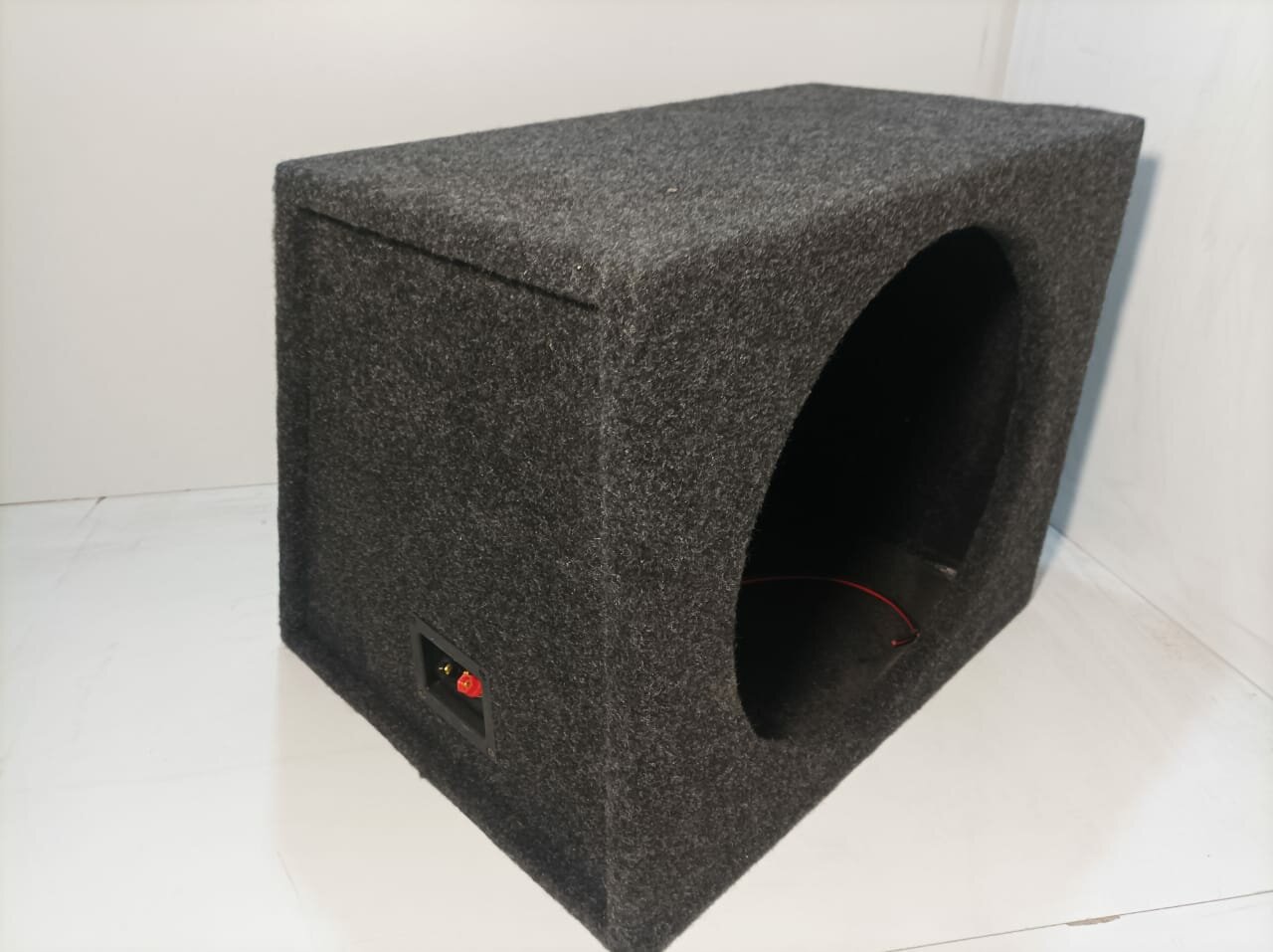 Короб, закрытый ящик, для сабвуфера 12дюймов. Отверстие под динамик диаметром 282мм. Лицевая панель выполнена из МДФ. Внутренний объем 24 литра. Боковые стенки утоплены на 10мм. Форма-полутрапеция. Внешний размер : ширина 40см, высота 36см, глубина низ 33см, глубина верх 20см. Материал : ДСП 16мм, МДФ 16мм, карпет (цвет графит)