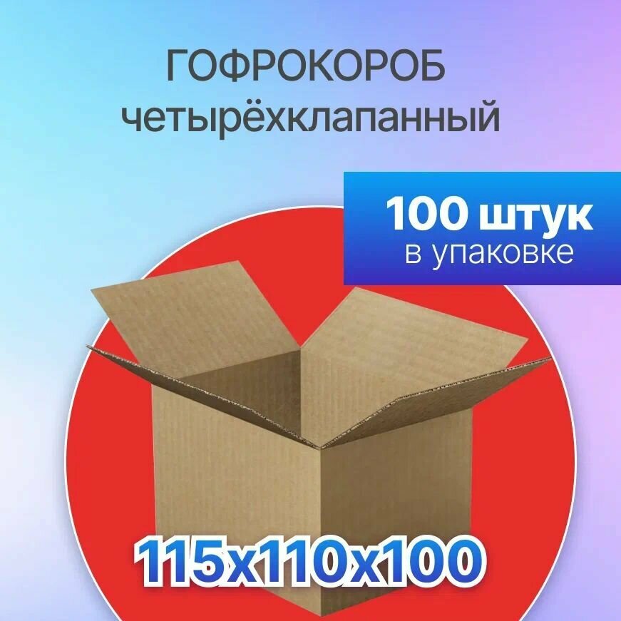 Купить Коробка для посылок картонная четырехклапанная 115х110х100 мм, Т-23, 100 штук с доставкой по всей России.